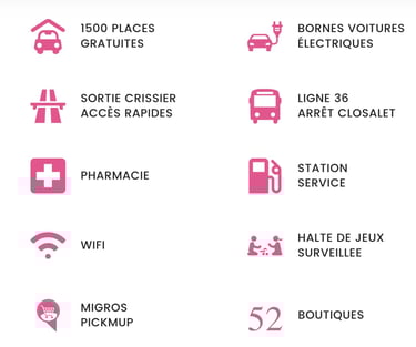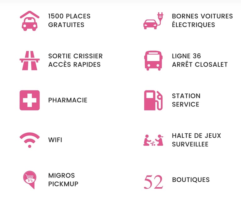 commerciale è situato in posizione ideale, vicino all'uscita autostradale della tangenziale di Losanna. L'accesso rapido è possibile tramite l'uscita autostradale 18 Losanna-Crissier. Seguire quindi la Route de Crissier in direzione Chemin du Closalet.